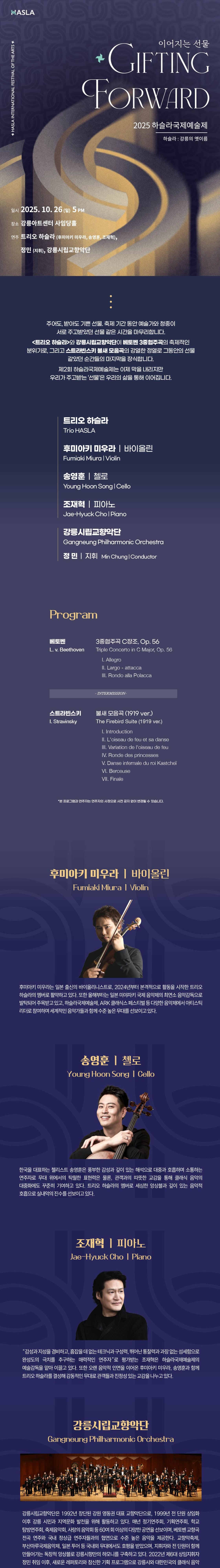 연주 | 트리오 하슬라(후미아키 미우라, 송영훈, 조재혁), 강릉시립교향악단(지휘 정민)
